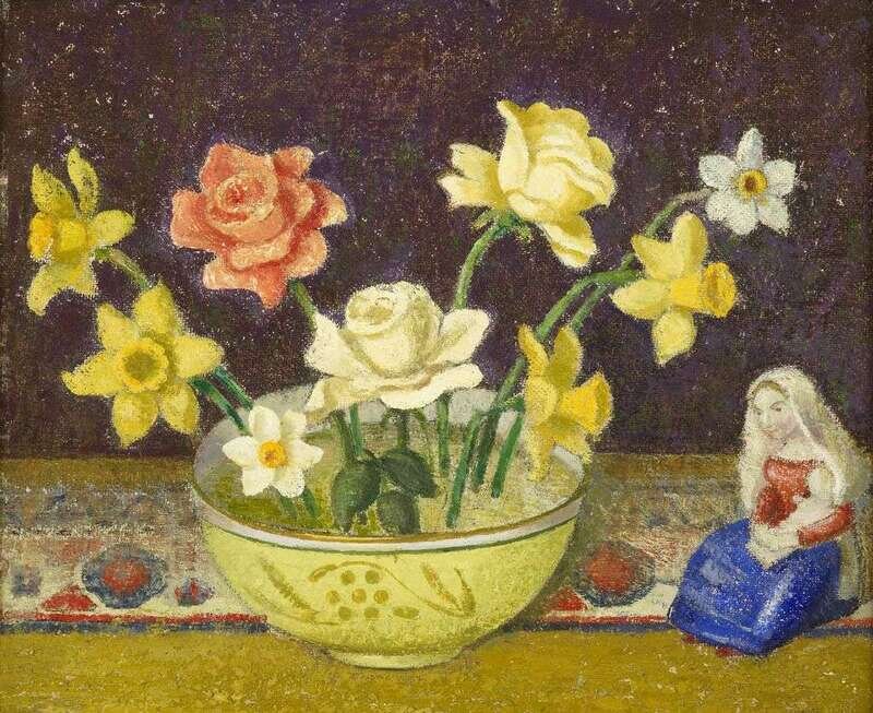 EMMA FORDYCE MACRAE (AMERICAN 1887-1974) STILL LIFE OF DAFFODILS AND ROSES