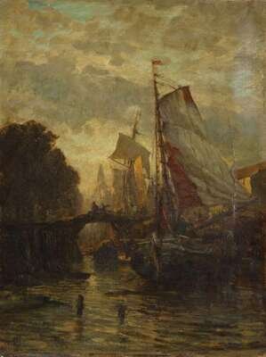GUSTAV SCHÖNLEBER (GERMAN 1851 - 1917) BUSY HARBOR