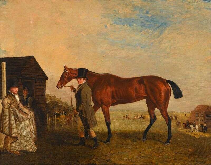BENJAMIN MARSHALL (BRITISH 1767-1835) "'PASTIME' A BAY FILLY, LED BY ONE OF HER TRAINERS, WITH A GROOM IN ATTENDANCE"