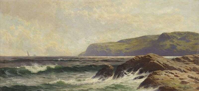 ALFRED THOMPSON BRICHER (AMERICAN 1837-1908) ON THE COAST, SAILBOATS ON THE HORIZON