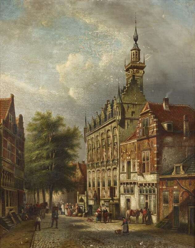 JOHANNES FRANCISCUS SPOHLER (DUTCH 1853-1894) A TOWN VIEW WITH FIGURES, BELIEVED TO BE MIDDLEBURG, ZEELAND, THE NETHERLANDS
