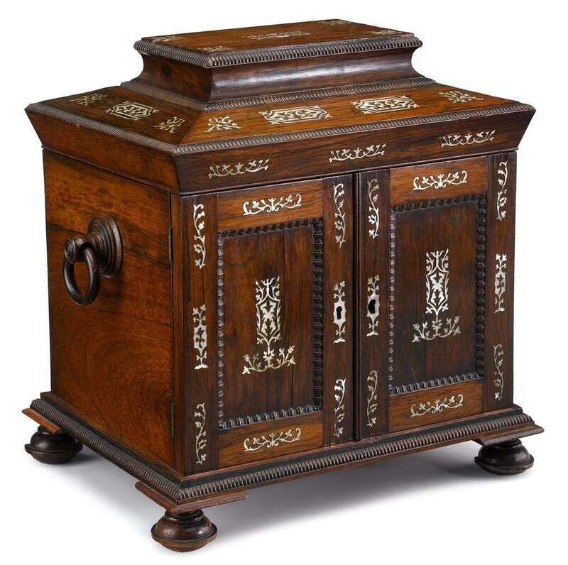 Fine Regency mother of pearl inlaid rosewood table cabinet early 19th century