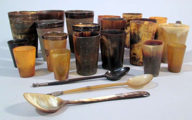 Collection of English horn beakers 19th century