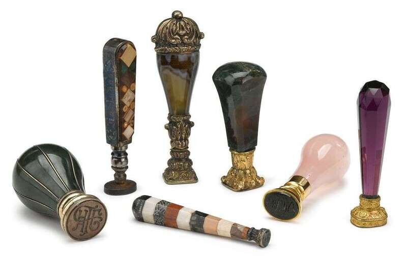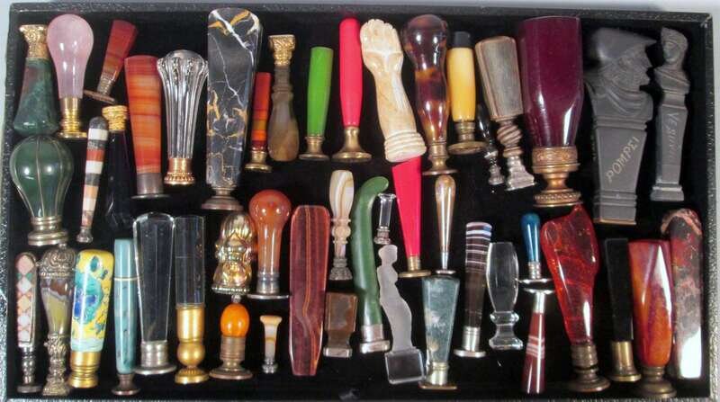 Collection of English and Continental wax seals, mostly hardstone 19th/20th century