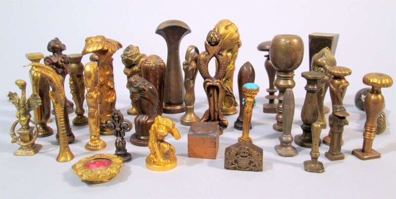 Collection of Continental bronze, brass, and gilt-metal wax seals 19th/20th century