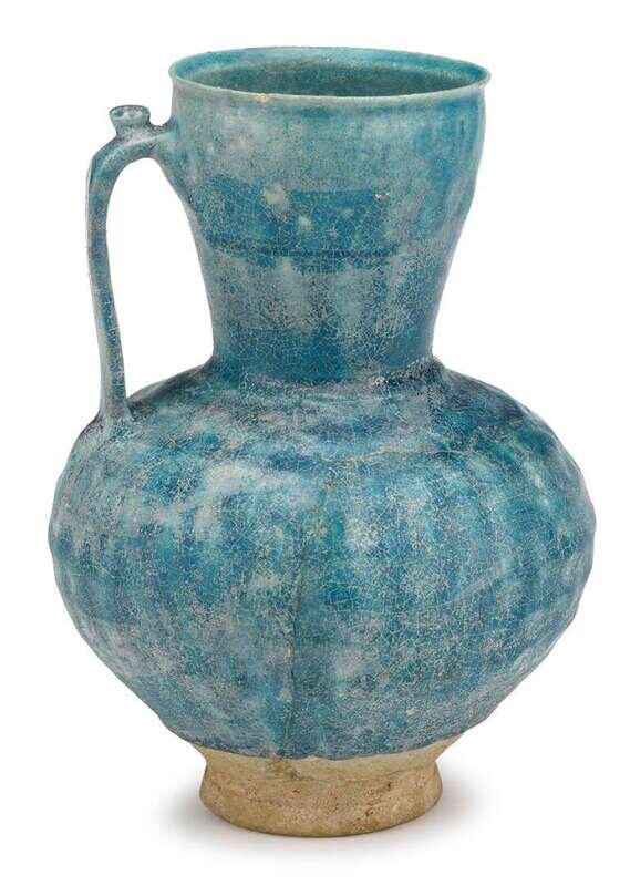 Middle Eastern turquoise painted pottery jug 19th century or earlier