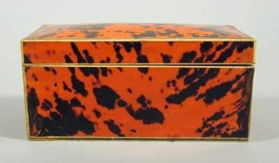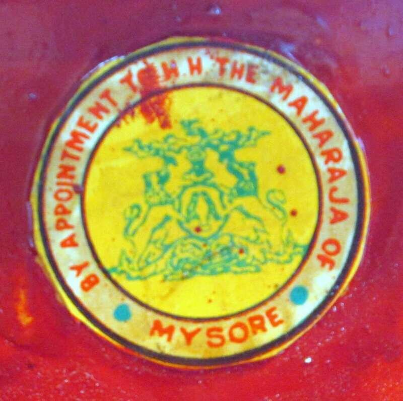 Rectangular, with bone edges, red painted interior, the underside of the lid bearing label "By Appointment to H. H. The Maharaja of Mysore".