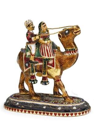 Indian 22 karat gold diamond inset and enamel model of a camel early 20th century, probably jaipur