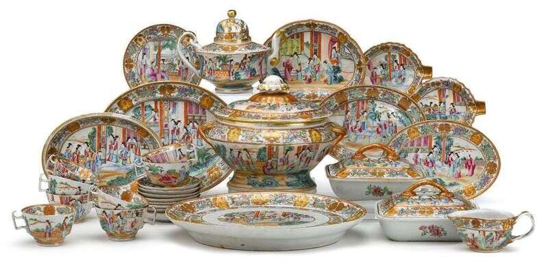 Fine Chinese export gilt decorated rose mandarin porcelain part dinner service early 19th century