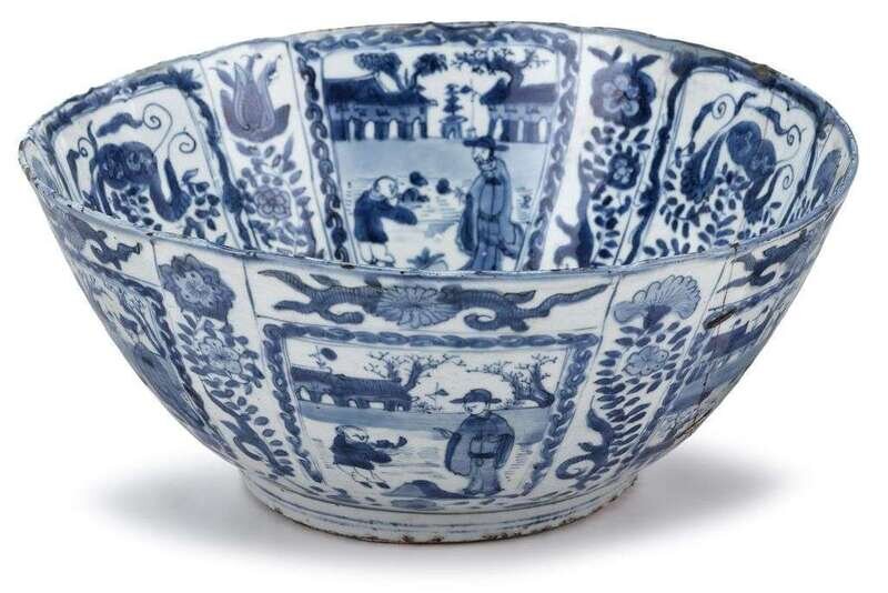 Large Chinese 'Kraak' blue and white porcelain bowl ming dynasty