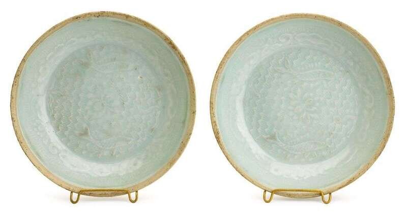 Pair of Chinese celadon glaze molded dishes song dyansty