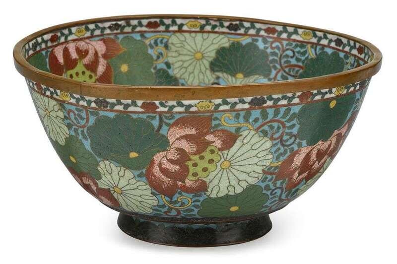 Large Chinese cloisonné enameled bowl