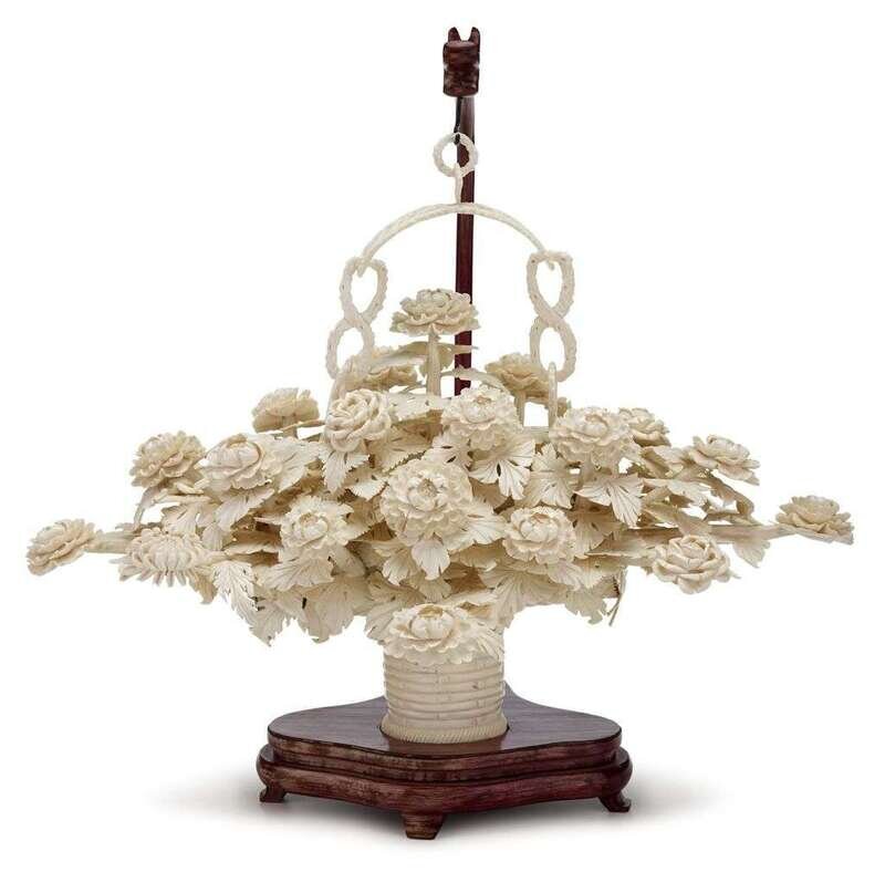 Large Chinese ivory basket model