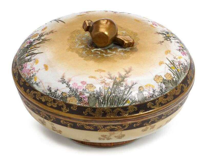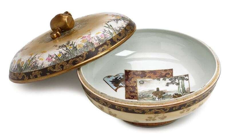 Japanese Kutani porcelain covered bowl meiji period, kaburagi mark