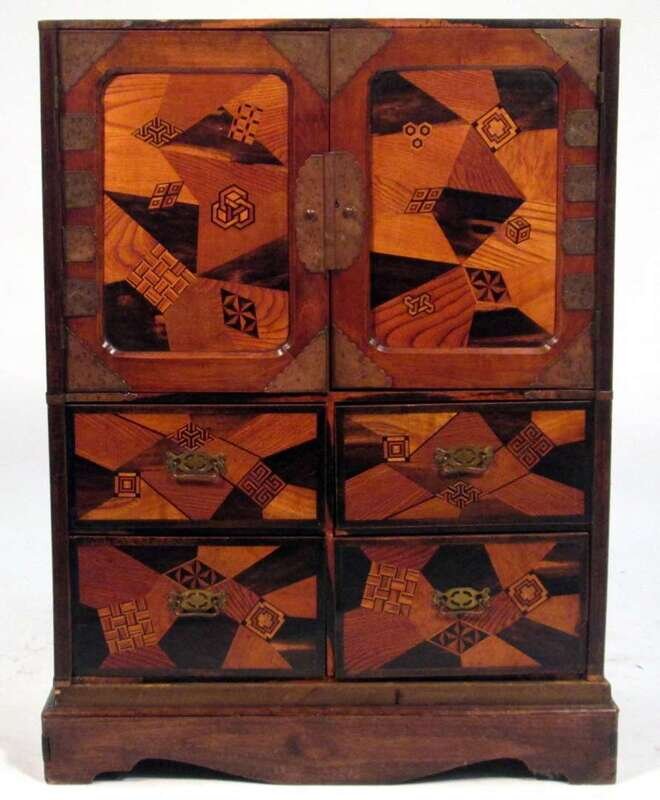 Japanese parquetry inlaid cabinet 19th century