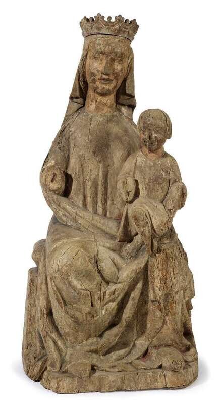 French carved oak figure of the Virgin and Child probably 14th/15th century
