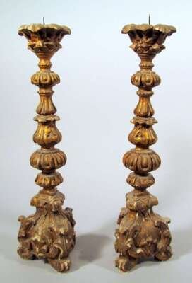 Continental Baroque style carved giltwood pricket sticks 19th century