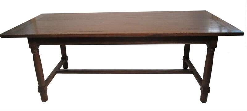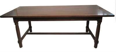 The rectangular top raised on baluster carved legs joined by H-form stretcher.