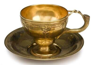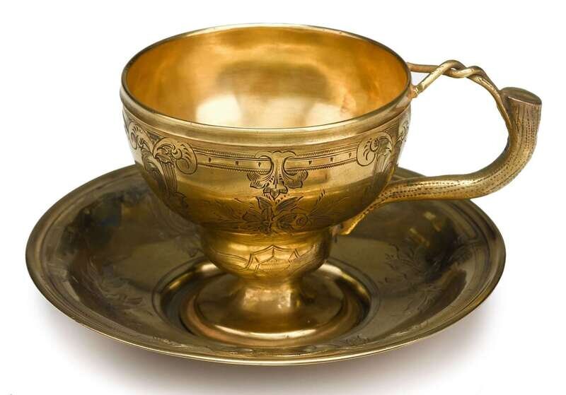 Russian silver-gilt tea cup and saucer st. petersburg, 1861, assay master alexander mitin, maker unidentified