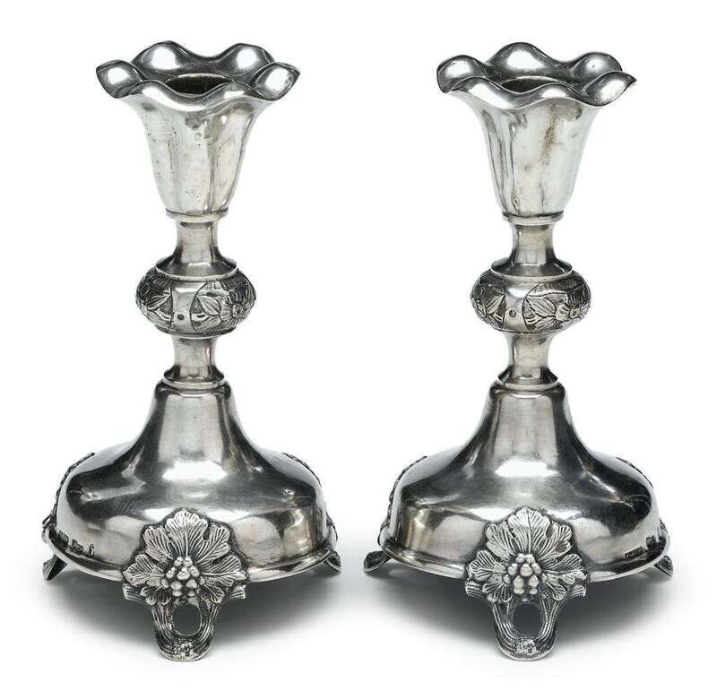 Pair Polish silver candlesticks cyprian labecki, warsaw, 1893, assay master unidentified