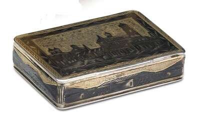 Russian niello silver snuff box moscow, 1830, assay master nicholai bubrovin, maker unidentified