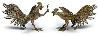 Each rooster posed in a fighting stance, with engraved detail to the bodies.