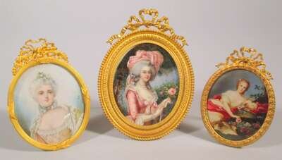 The first after a painting by Louise-Elisabeth Vigée-Lebrun of Marie Antoinette holding a rose, signed Lagarde; the second a portrait of Henriette de Bourbon, signed Pichour; the third a lady, signed (?)Piatz. .