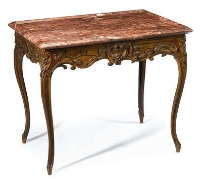 Louis XV carved walnut marble top console table circa 1730, attributed to nicolas-quinibert foliot