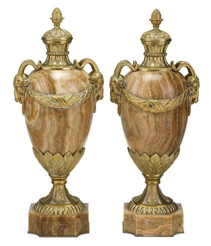 Pair of Continental gilt bronze mounted marble urns 19th century