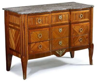 Good Transitional gilt bronze mounted parquetry inlaid kingwood commode late 18th century