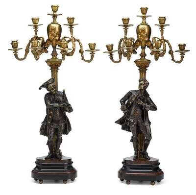 Pair of Continental bronze figural candelabra early 20th century