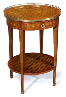 Louis XVI style gilt bronze mounted marquetry inlaid kingwood gueridon