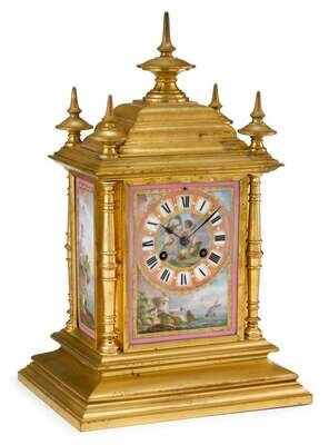 French Sevres style painted porcelain inset mantle clock early 20th century