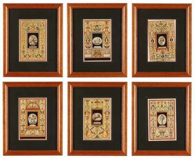 Six hand-colored engravings of gems from the Etruscan Museum in Cortona giovanni cassini after vincenzo brenna (italian, 1747-1820)