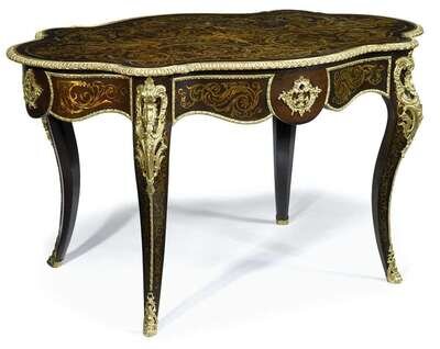 Napoleon III gilt bronze mounted brass inlaid center table circa 1870