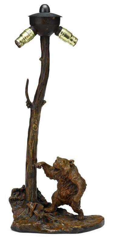 The base naturalistically modeled as a standing bear, the stem in the form of a tree trunk.