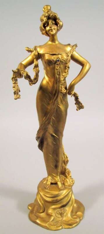 French gilt-metal sculpture of a female figure after henri desire grisard (french, active 1925-1940)