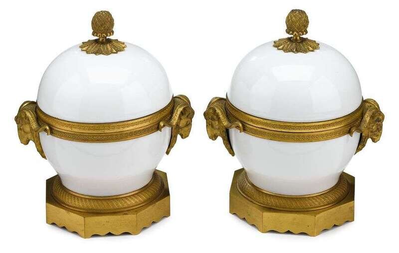 Pair of Continental gilt metal mounted porcelain cassolettes early 20th century