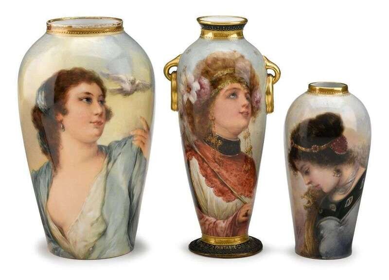 Three Royal Vienna hand-painted and gilt porcelain vases signed f. tenner