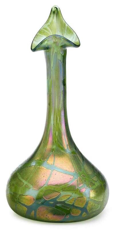 Loetz iridescent green art glass vase