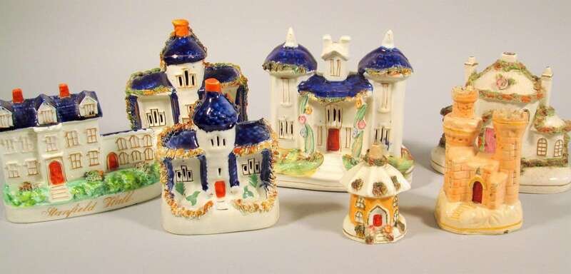 Seven Staffordshire hand-painted pottery architectural structures