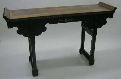 Chinese white jade mounted mixed hardwood recessed leg table 19th / 20th century