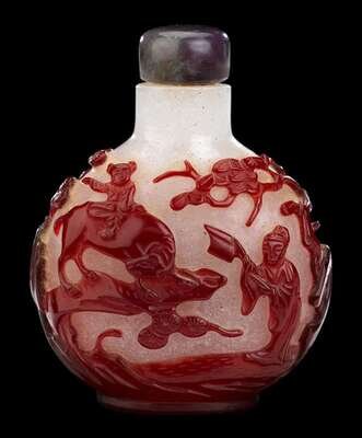 Chinese red on 'snow flake' glass snuff bottle 19th century