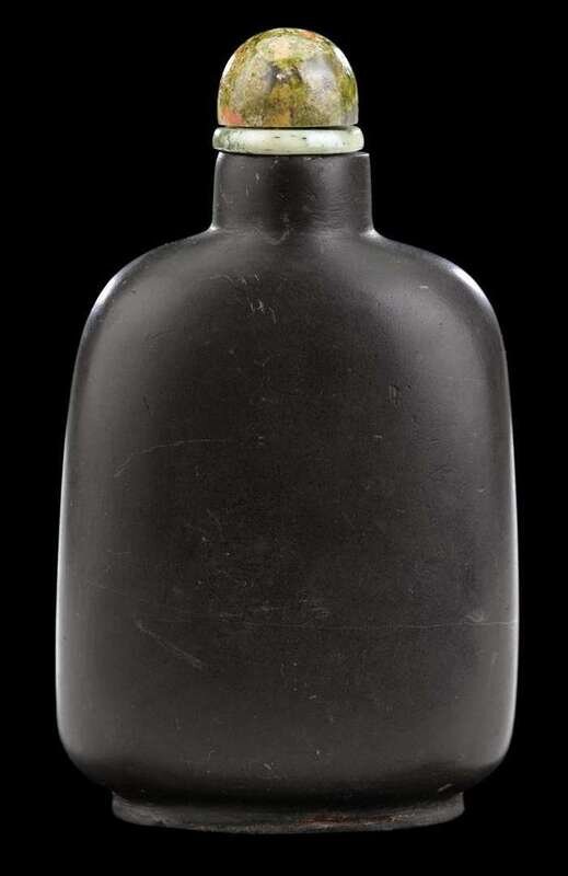 The heavy rectangular bottle of homogeneous dark purple hue similar to yixing clay.