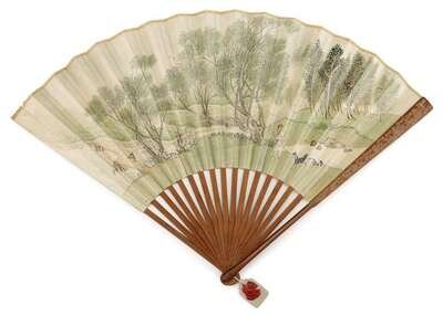 WANG TANXIU (1744 - 1809) CHINESE FAN PAINTING AND WANG TANXIU CALLIGRAPHY ON VERSO