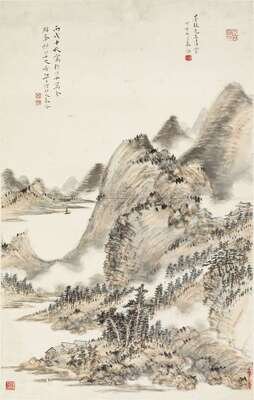 QIN ZHONGWEN (1896 - 1974) dated 1946 LANDSCAPE