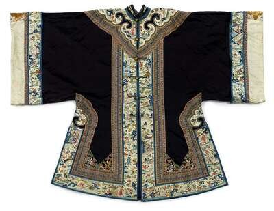 Chinese lady's dark blue semi-formal robe late 19th century