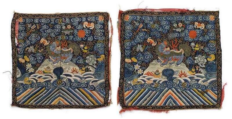 Rare pair of Chinese kesi silk rank badges 19th century