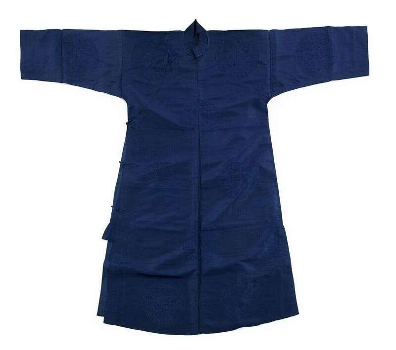 Chinese blue brocade dragon robe 19th century