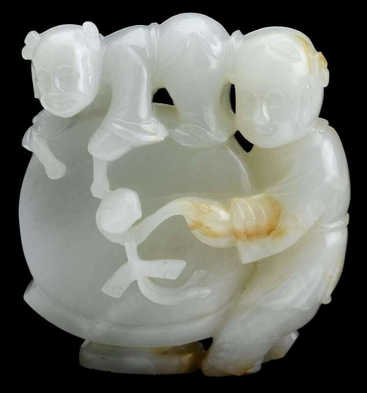 Fine Chinese white jade boy group 19th century